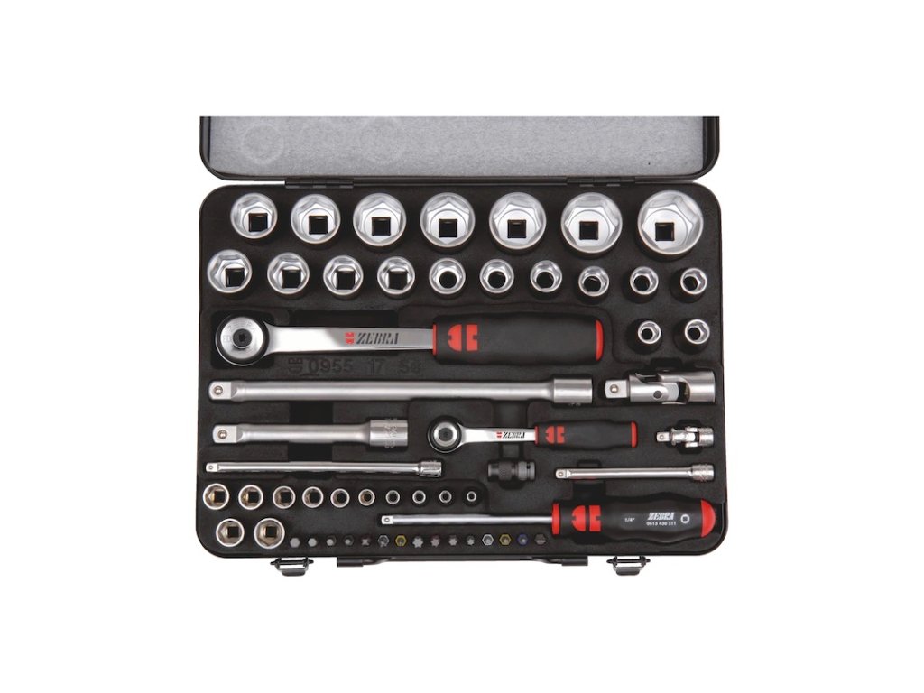 GOLA Sada nástr. klíčů 1/4" + 1/2", 56 ks Velká sada 1/4palcových a 1/2palcových kombinovaných klíčů pro mimořádně široké použití, s přepínací ráčnou, nepoužitá v kufru.